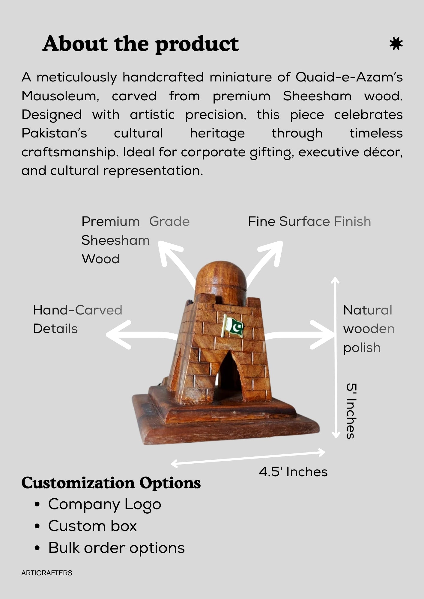 Handcrafted SheeSham Wood Miniature of Quaid-e-Azam Tomb